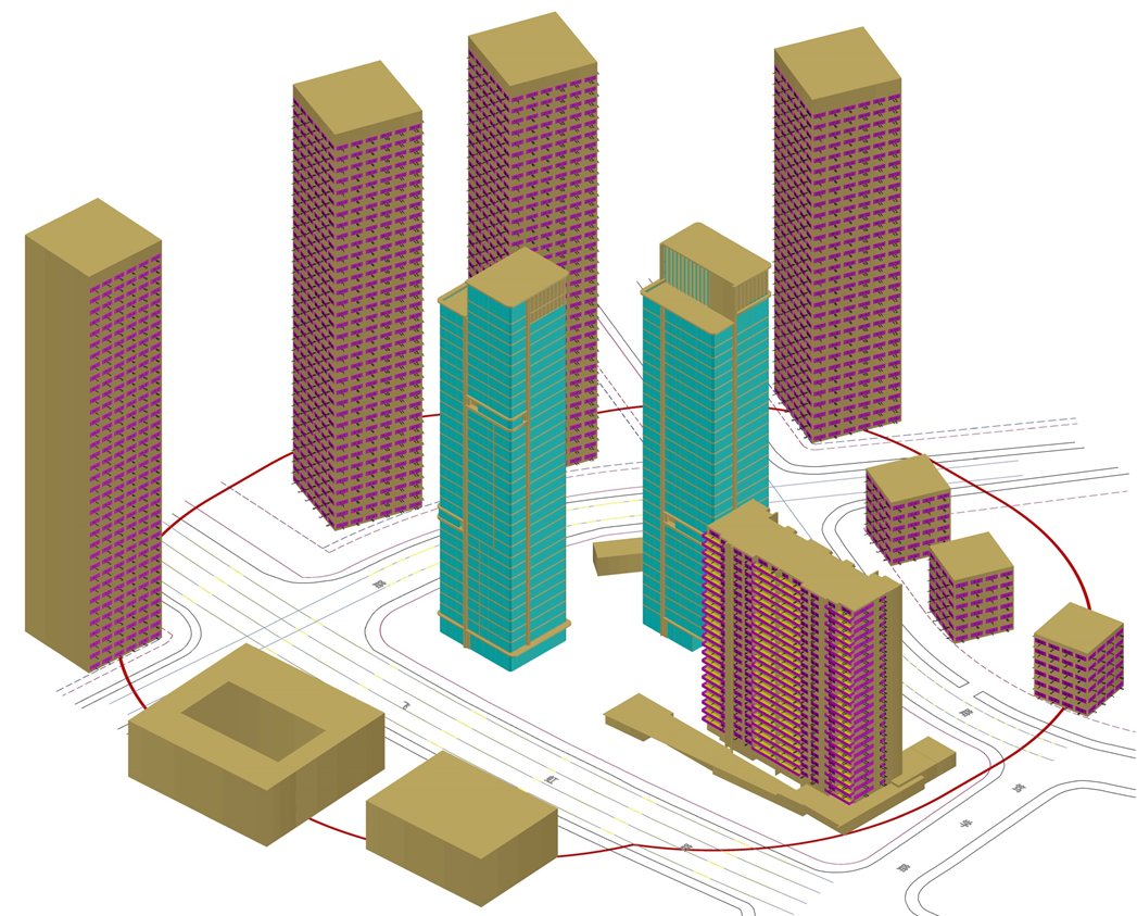 根据国家标准《玻璃幕墙光热性能》GB18091-2015光环境评价条文要求,敏感目标应包括:(1)南面规划小学;(2)主干道路口和交通流量大的区域。本次建筑的计算影响范围取100米。项目100米范围内有三条主要道路分别为:飞虹路、利丰路、博望路等城市道路。产生的反射光可能对驾驶员视线产生影响,增加安全隐患故有必要对现有的立面方案进行对道路的光污染分析。